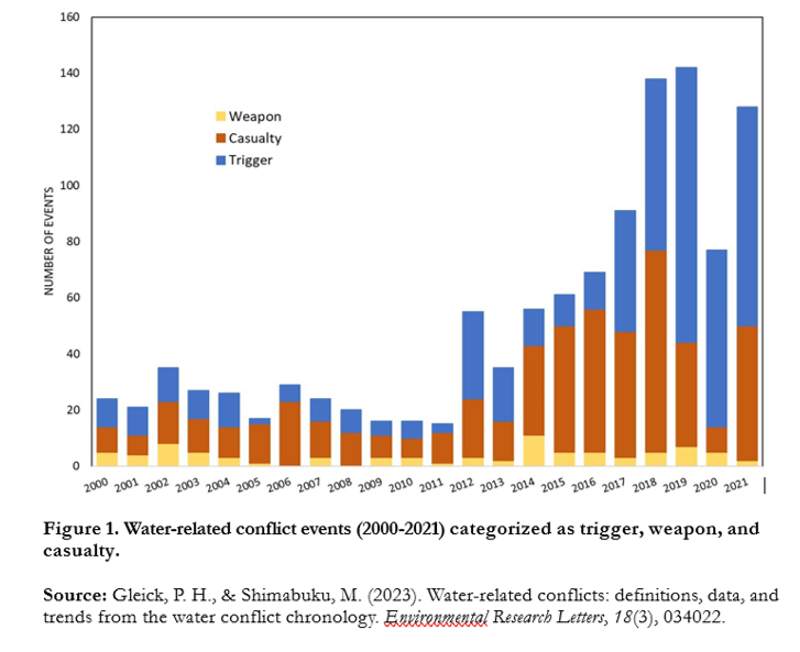 Drawing on the influential works of Aaron Wolf and Peter Gleick, he examines how our understanding of water’s role in international relations has evolved over the past three decades. While Wolf’s groundbreaking 1998 research demonstrated that shared water systems tend to promote cooperation rather than conflict, Gleick and his colleagues at the Pacific Institute have more recently documented a disturbing countertrend — the growing weaponization of water in modern warfare. Data from the Institute’s Water Conflict Chronology reveal a sharp rise in violent events where water systems themselves become targets or tools of war. Farhad highlights three ways in which water features in conflict today (classification is of Gleick’s): as a trigger, when disputes arise over rivers, dams, or irrigation rights; as a weapon, when flooding, contamination, or the destruction of infrastructure is used to cause harm; and as a victim, when wars leave communities without access to clean water. These patterns, he warns, show how water has shifted from being a symbol of peace and cooperation to a strategic instrument of power and control.
